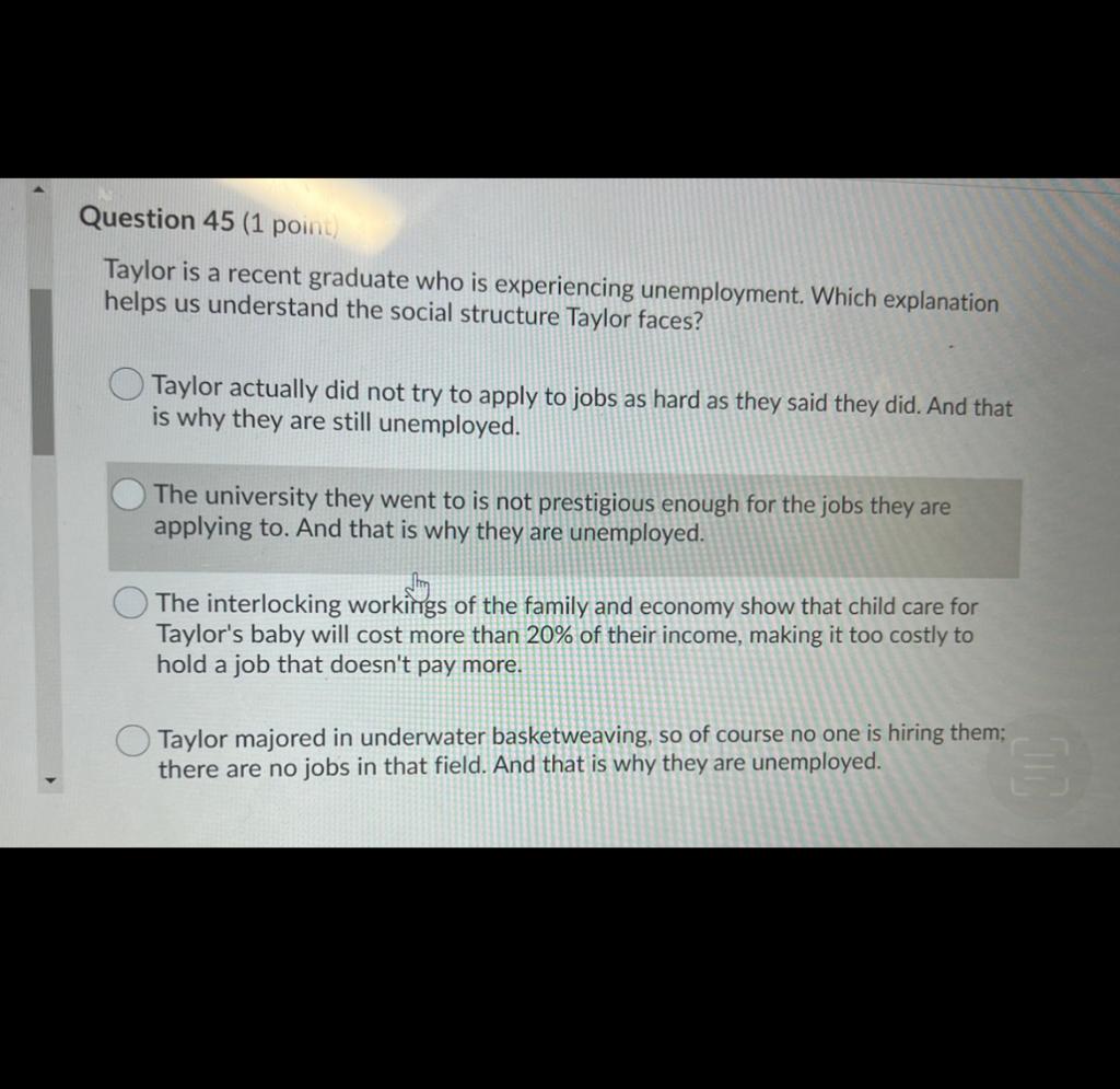 Solved Question 45 1 Point Taylor Is A Recent Graduate Who Chegg Com